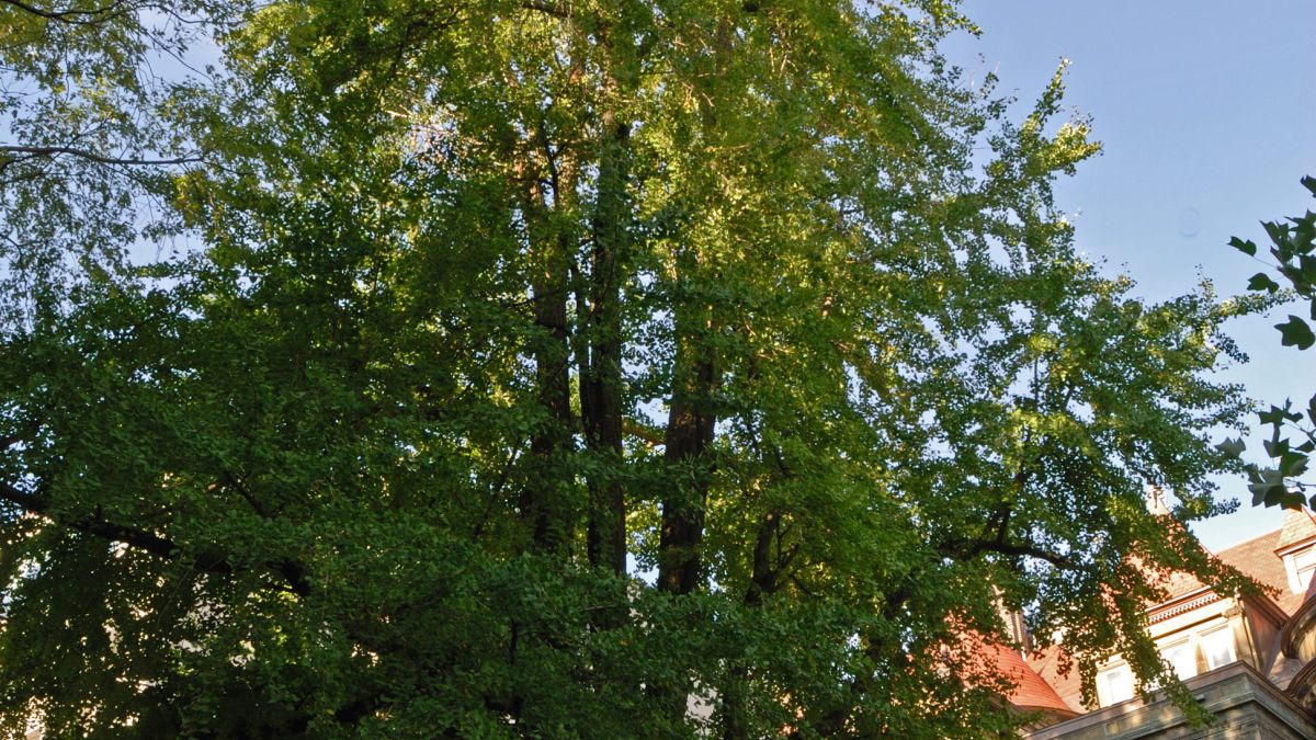 Ce ginkgo bilobé (Ginkgo biloba), un des plus vieux à Montréal aurait été planté en 1892, l’année de la construction de la maison de James Ross occupée aujourd’hui par le pavillon Chancellor Day de l’Université McGill.