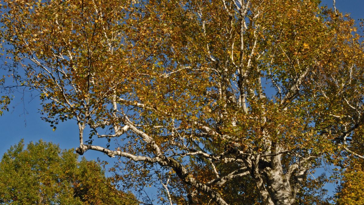 Cet arbre, dont l’espèce est indigène au Québec, possède un tronc de 85 cm de diamètre, ce qui est largement au-dessus de la moyenne normalement observée pour cette espèce en conditions naturelles (30 à 60 cm au Canada). Âgé d’environ 100 ans, il approche de son espérance de vie qui est de 120 ans. Son écorce blanche ajoute une touche de lumière et du relief au paysage de ce secteur.