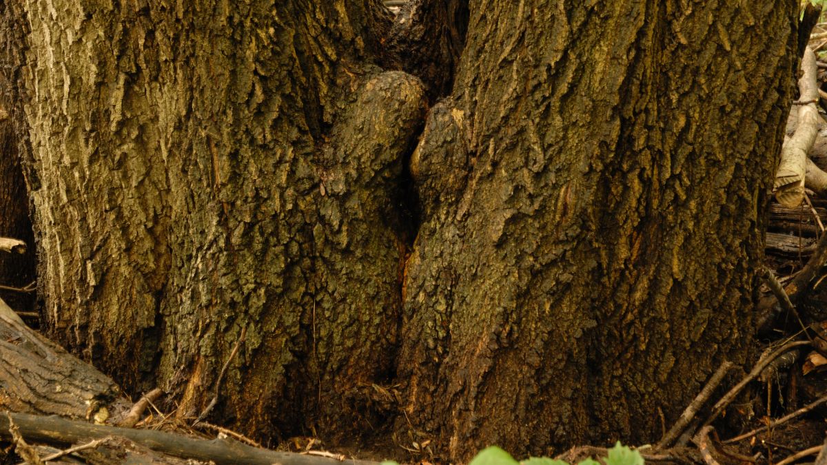 Cet arbre, dont l’espèce est originaire d’Europe et d’Asie mineure, normalement gélif sous notre climat, semble avoir trouvé sa niche écologique dans ce boisé. Jusqu’à présent, il semble en bonne santé malgré la présence de remblai autour de lui et le risque d’être attaqué par l’agrile du frêne. Ses deux troncs de 70 cm de diamètre nous permettent d’estimer son âge entre 60 et 70 ans. Il possède une cime qui domine les autres arbres et qui donne l’impression d’un immense dôme protecteur lorsque l’on s’en approche.