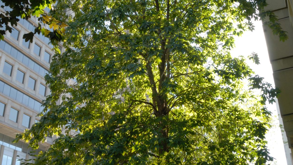 Ce magnifique marronnier à fleurs jaunes de l’Université McGill a un diamètre de 59 cm et a atteint, en 2012, la hauteur de 20 m. Il se porte très bien et semble bien adapté à son environnement montréalais. Il a un port très élancé et une forme ovale.