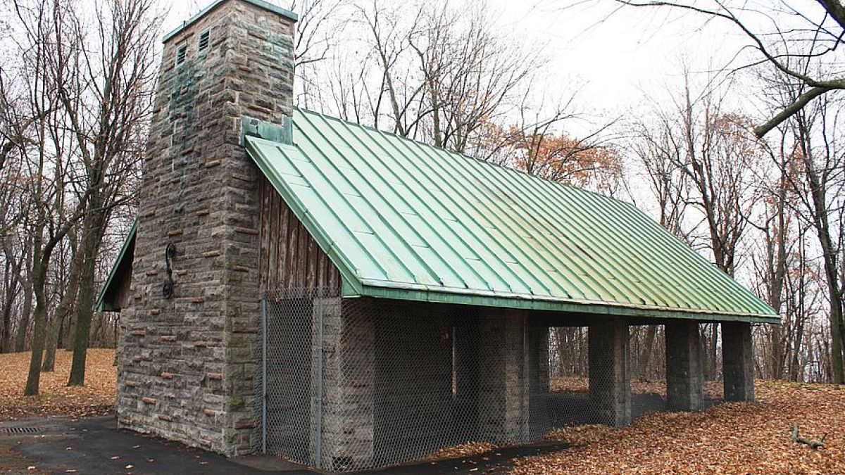 L’abri du réservoir du Sommet est une structure ouverte sur trois côtés construite en 1956. En plus de servir d’accès au réservoir qui se trouve en-dessous, le bâtiment était utilisé à l’origine comme abri par les usagers du parc qui pouvaient, par exemple, venir y faire des pique-niques. Le grand toit à deux versants recouvert de cuivre repose sur 10 piliers en pierre. À l’une de ses extrémités, l’édicule d’accès au réservoir souterrain prend la forme d’une grande cheminée en maçonnerie ornée d’une esse en fer forgé. À l’autre extrémité, le pignon est revêtu d’un lambris de bois posé à la verticale. De l’intérieur, la charpente en bois de la toiture est apparente. Bien que l’abri possède une composition moderne, le choix des matériaux comme la pierre, le bois et le cuivre qui évoquent l’architecture traditionnelle québécoise s’inscrit dans une longue tradition du parc du Mont-Royal, qui mise sur l’intégration des nouveaux immeubles au caractère pittoresque du lieu. Actuellement clôturé pour en limiter l’accès, le bâtiment est en attente de travaux de mise en valeur.